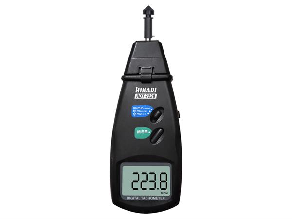 O Tacômetro Digital modelo HDT-2238 se destaca pelas medidas de RPM por contato, RPM sem contato e velocidade linear por contato. O projeto da estrutura adota um design compacto e ergonômico, proporcionando maior praticidade. Leve, resistente, proporciona alto desempenho e alta precisão. Como característica adicional apresenta as funções: Máximo, Mínimo, Última Leitura e Indicação de Bateria Fraca. O Tacômetro Digital HDT-2238 pode ser utilizado para medir a rotação de motores elétricos em máquinas e para determinar a rotação do motor em veículos.