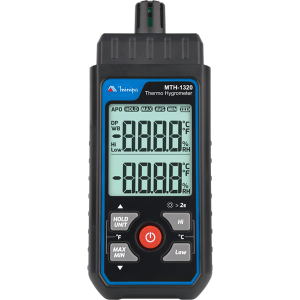 O MTH-1320 um termo-higrômetro de alta precisão, oferece facilidade de uso e diversas funcionalidades essenciais para medição de temperatura e umidade. Inclui funções como data hold, medição máxima/mínima/média, desligamento automático com opção de cancelamento, configuração de limites de alarme Hi-Low, luz de fundo e alarme de luz colorida para leitura em ambientes com pouca iluminação, e indicação de bateria baixa para garantir confiabilidade nas medições.